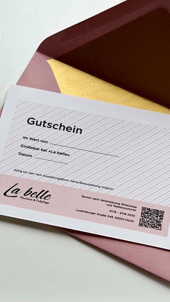 - Schickes Design: Jeder Gutschein ist von einem Profi gestaltet und sieht einfach toll aus. Da macht schon das Überreichen Spaß!